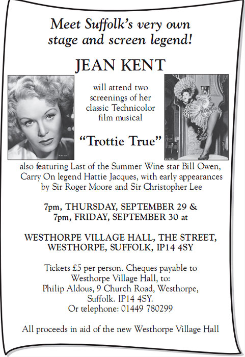 Jean Kent will be introduced to Westhorpe audiences, as she